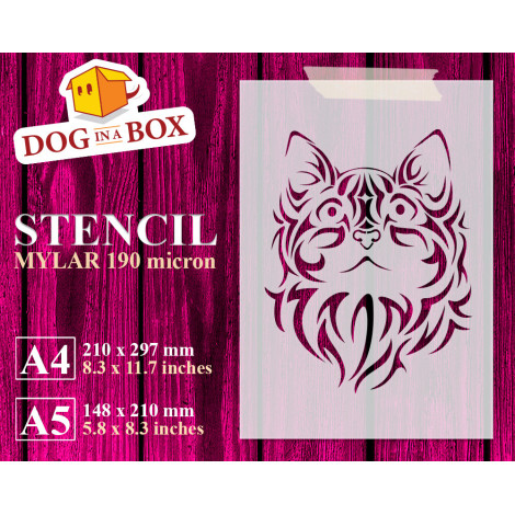 Stencil Gatto tribale per la pittura su legno, pareti o tessuti.