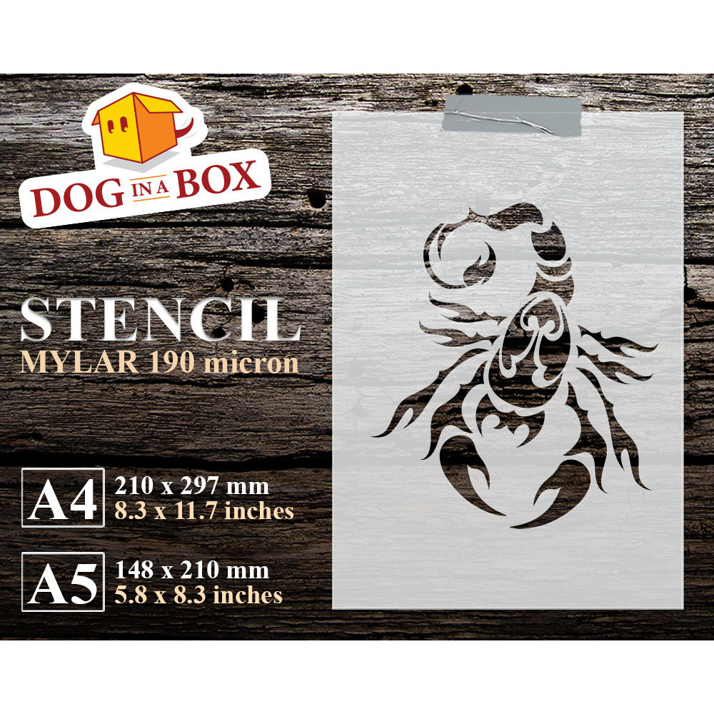 Stencil riutilizzabile di uno scorpione per la pittura su legno, pareti o tessuti.