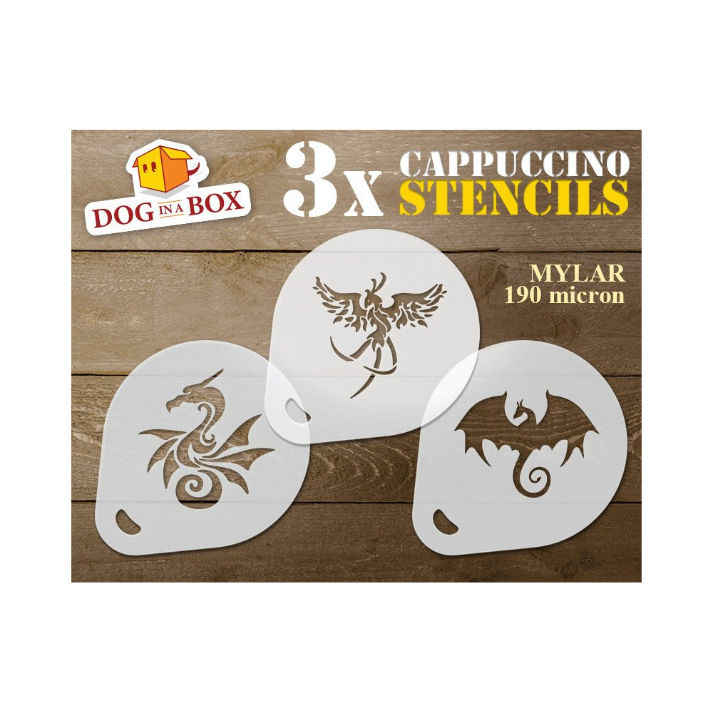 Stencil draghi n.1 (set di 3) - Stencil decorare cappuccini e caffè con polvere di cacao - Stencil per faceprinting