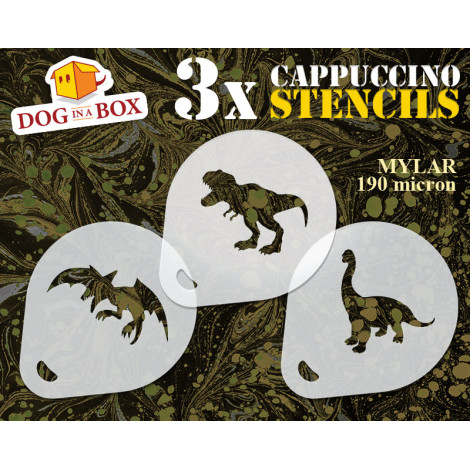 Stencil dinosauri n.4 (set di 3) - Stencil per decorare cappuccini e caffè in polvere di cacao - Stencil per faceprinting