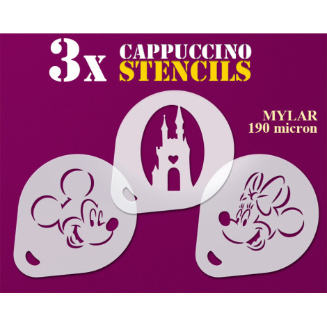 Stencil Disney n.1 (set di 3) - Stencil Disney per face painting, cappuccini, pareti