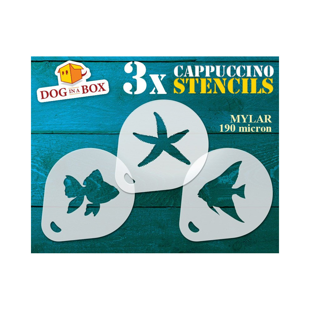Stencil Animali marini n.1 (set di 3) - Stencil per decorare cappuccini, pareti, legno o tessuti