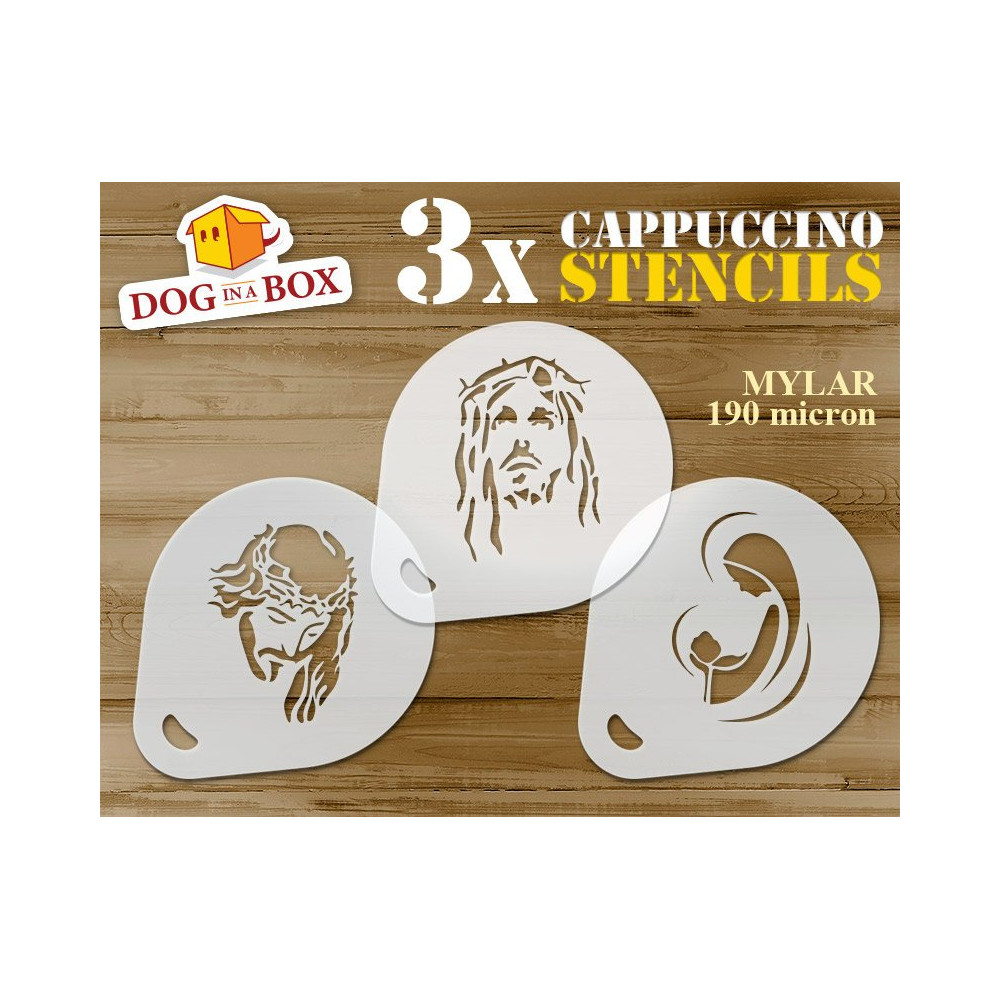 Stencil Gesù n.1 (set di 3) - Stencil per decorazioni con cacao in polvere per cappuccino e caffè o pareti, candele e altro