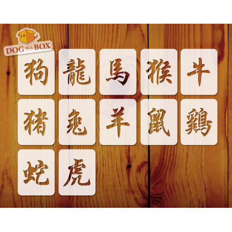 Stencil Segni dello Zodiaco cinese - 12 stencil riutilizzabili in cinese per decorazioni di pareti e tessuti