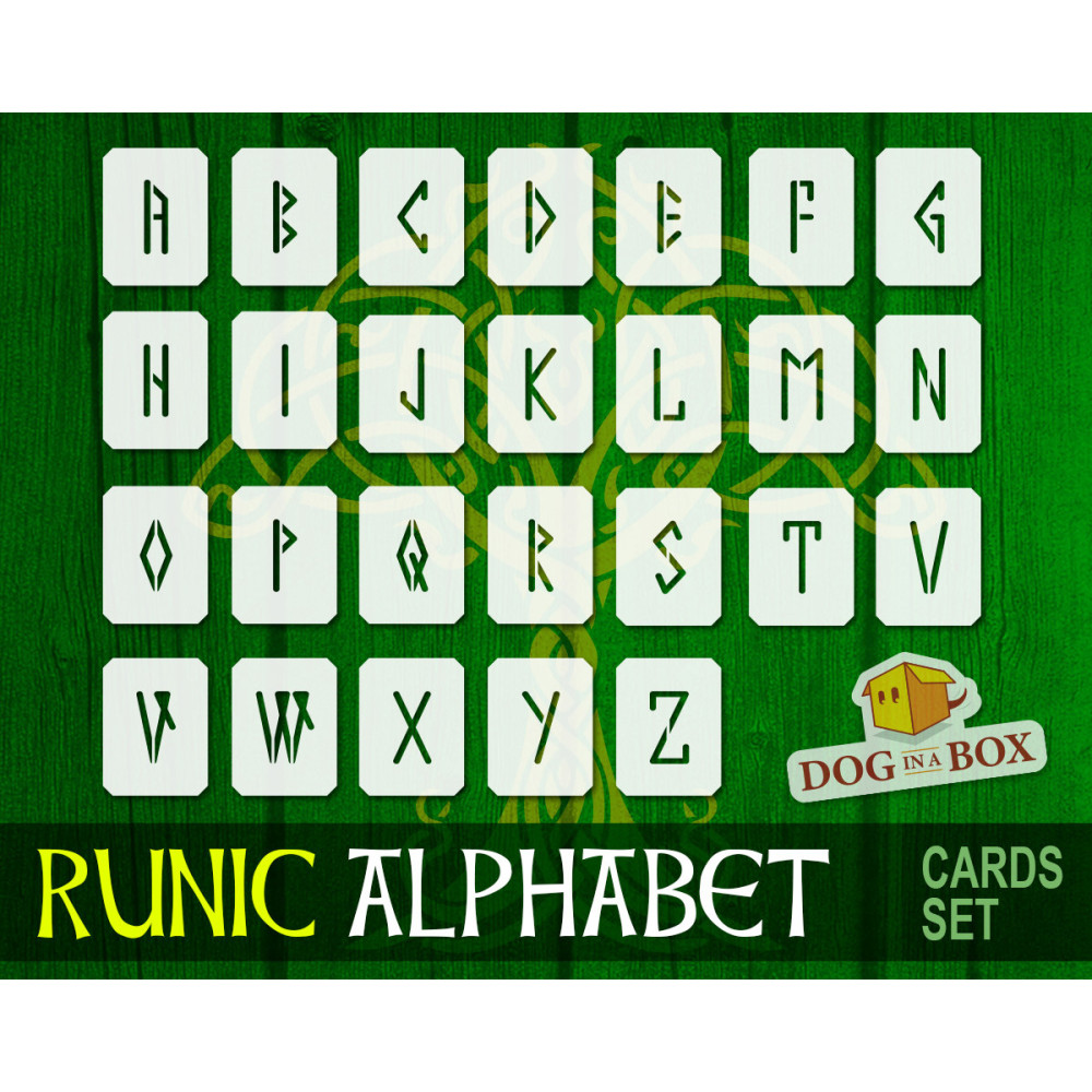SET di 26 stencil per lettere Runiche singole, realizzati in Mylar da 190 micron per uso alimentare (approvato dalla FDA) con pellicola in poliestere resistente ai solventi.