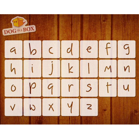Stencil Alphabet font n.3 - Stencil per caratteri minuscoli per insegne e pareti in legno. Stampini per lettere singole