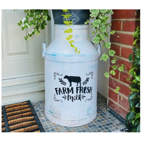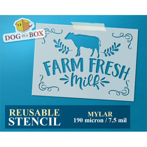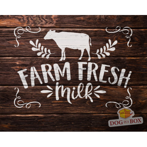 Stencil "Farm Fresh Milk" per la pittura su insegne in legno, tessuti, borse e pareti.