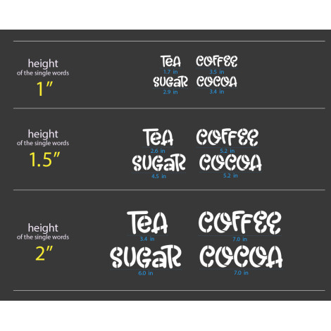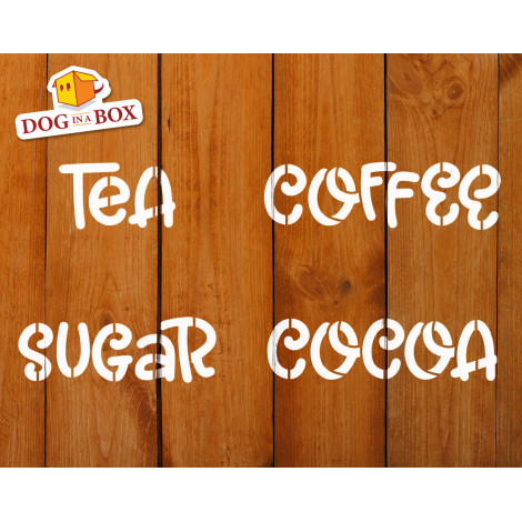 Stencil Tea Sugar Coffee Cocoa (Tè, Zucchero, Caffè, Cacao) per barattoli o parete. Design n.1