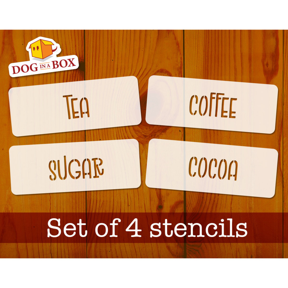 Questo set è composto da quattro stencil 4 diversi: TEA, COFFEE, SUGAR e COCOA