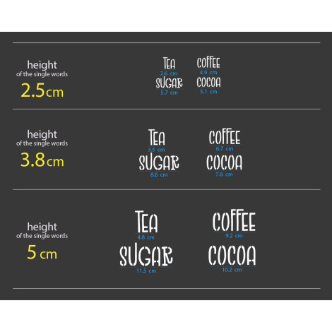 Stencil Tea Sugar Coffee Cocoa (Tè, Zucchero, Caffè, Cacao) per barattoli o parete. Design n.2