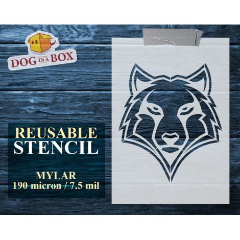 Stencil riutilizzabile di un lupo per pittura su legno, pareti o tessuti.
