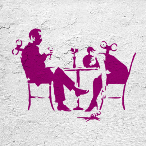 Cena al ristorante - Stencil Street Art per la pittura. Stencil graffiti coppia al tavolo.