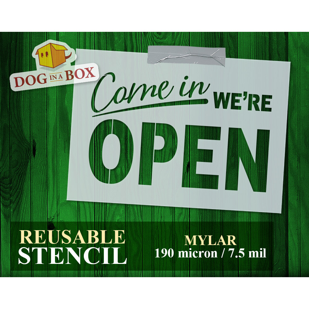 Stencil "Come in, We're Open" n.1 - Stencil vintage riutilizzabile per insegne. Stencil vintage "Aperto"
