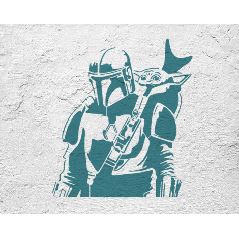 Stencil Mandalorian n.1 - Stencil Mando e Baby Yoda riutilizzabile di serie tv per geek e stanze per nerd