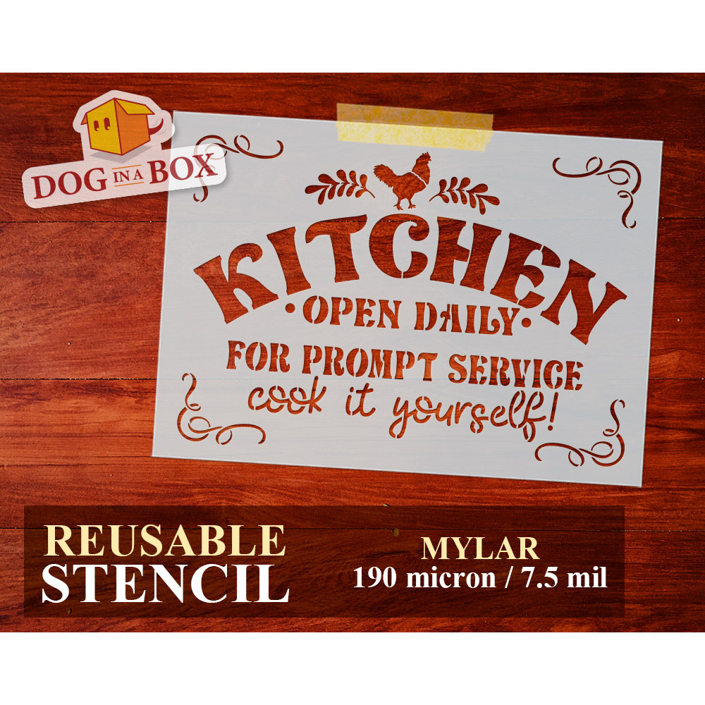 Stencil "Kitchen" n.1 - Stencil riutilizzabile di insegna vintage per pareti, legno, tessuti