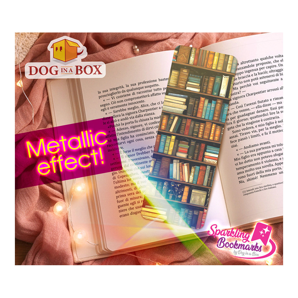 Segnalibro raffigurante una libreria n. 1 - effetto olografico metallizzato, idea regalo per lettori