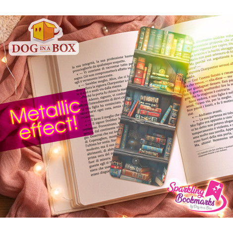 Segnalibro raffigurante una libreria n.2 - effetto olografico metallizzato, idea regalo per lettori