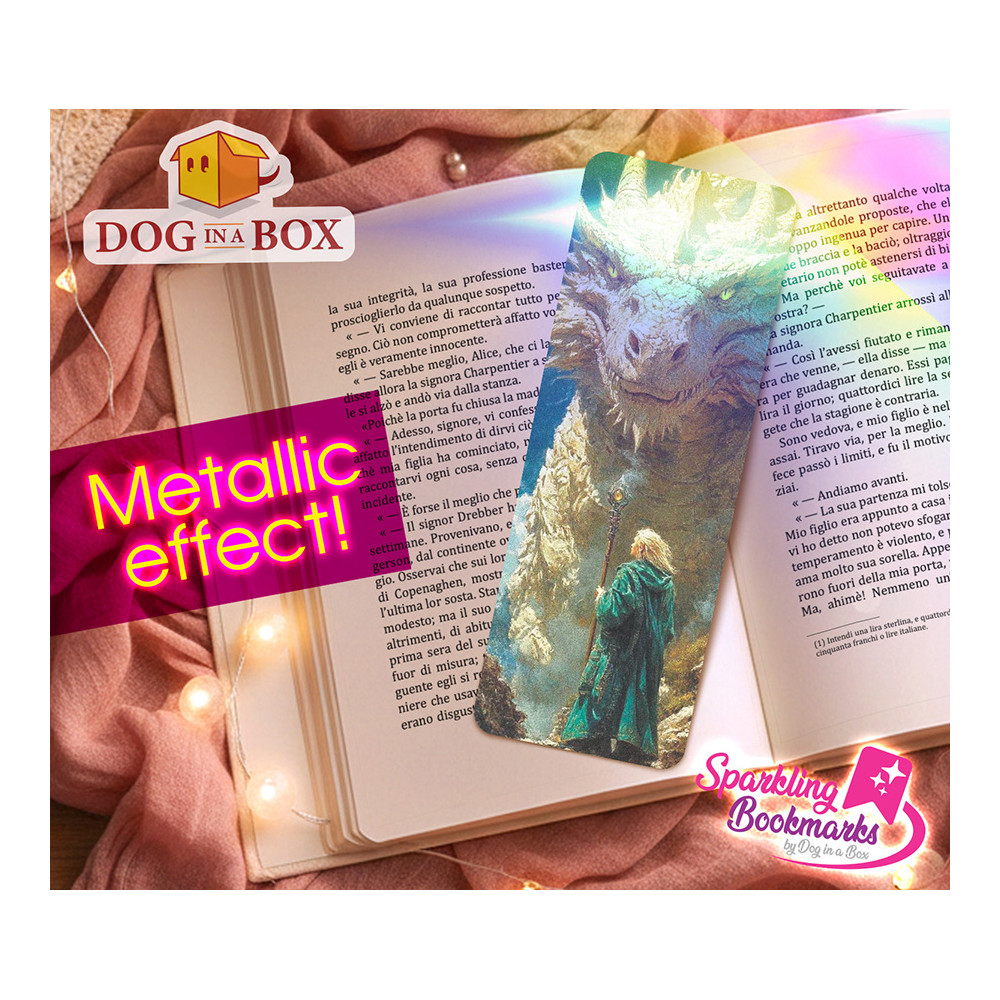 Segnalibro drago e mago n.1 - segnalibro effetto olografico metallico, stile fantasy