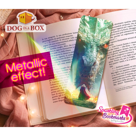 Segnalibro drago e mago n.2 - segnalibro effetto olografico metallico, stile fantasy