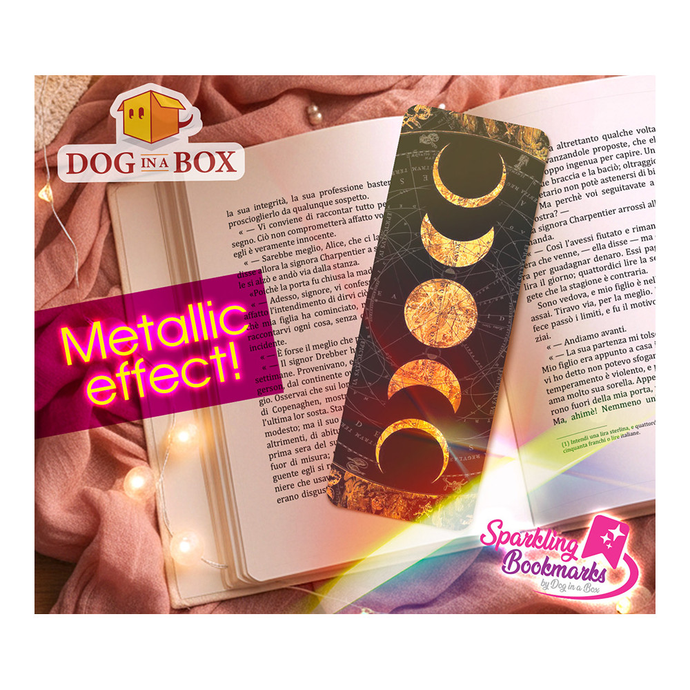 Segnalibro fasi lunari n.1 - segnalibro effetto olografico metallico, segnalibro luna e stelle