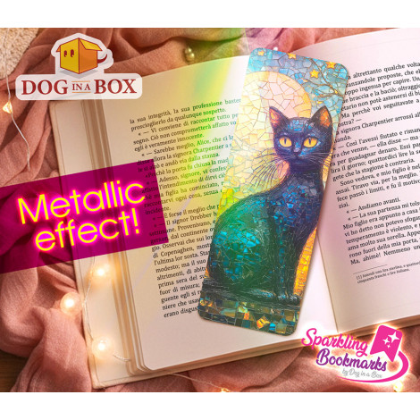 Segnalibro gatto mosaico n.1 - segnalibro effetto olografico metallizzato, idea regalo per amanti dei gatti