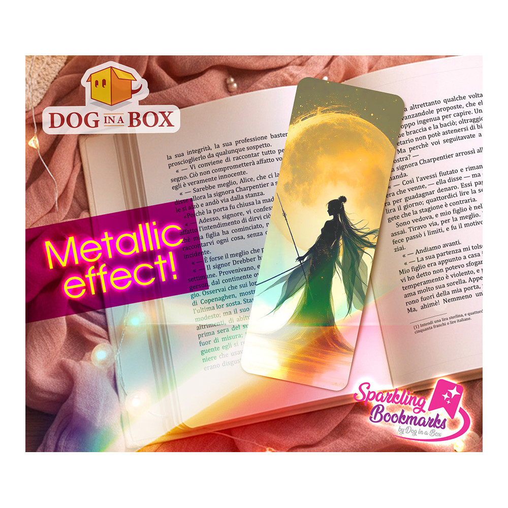 Segnalibro donna guerriero n.2 - segnalibro effetto olografico metallico, segnalibro stile giapponese
