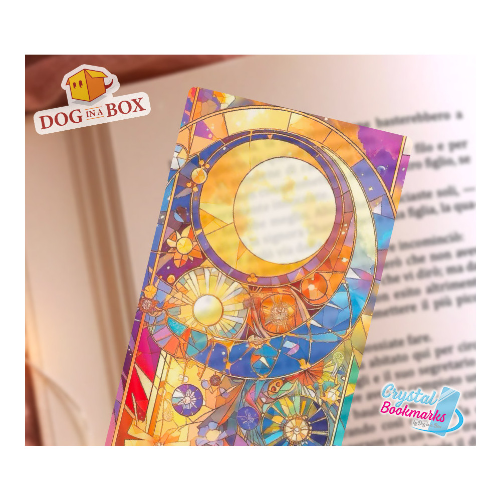 Segnalibro giorno e notte n.3 - Segnalibro trasparente fatto a mano | Effetto vetro, cristallo | Sole e luna