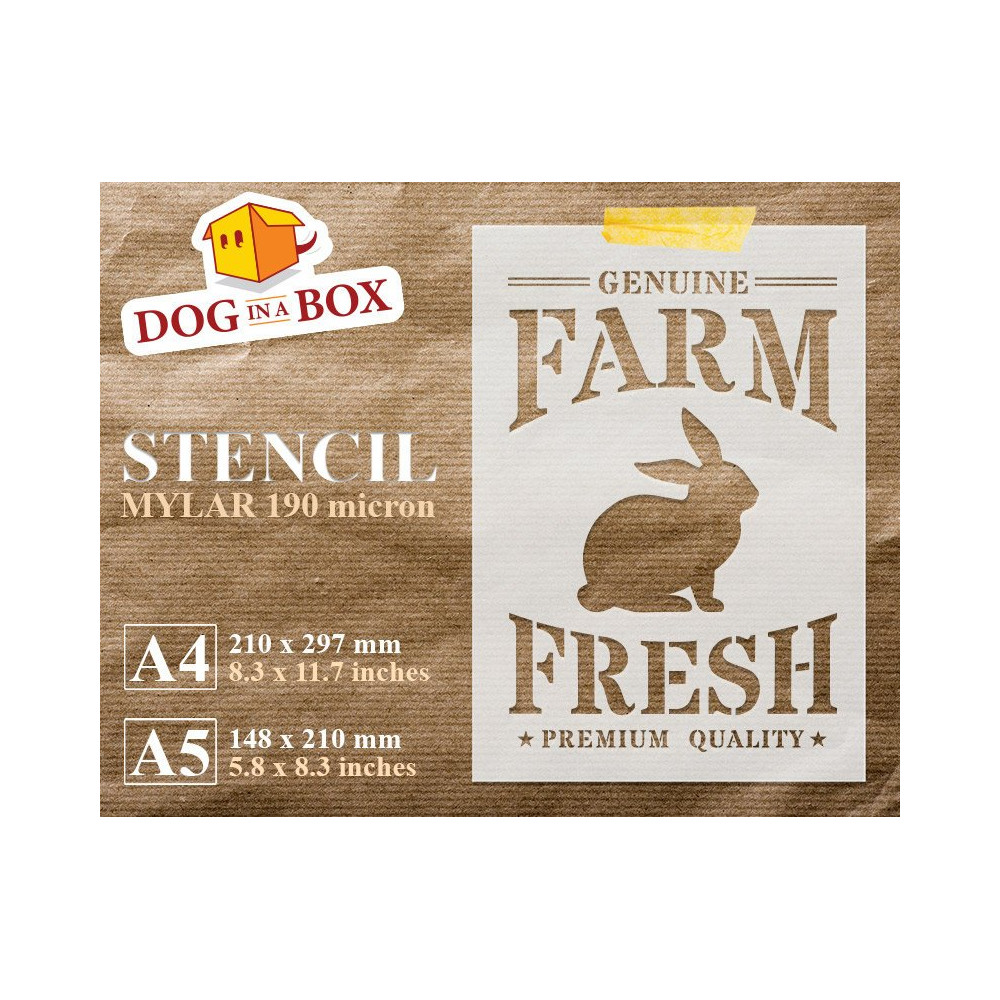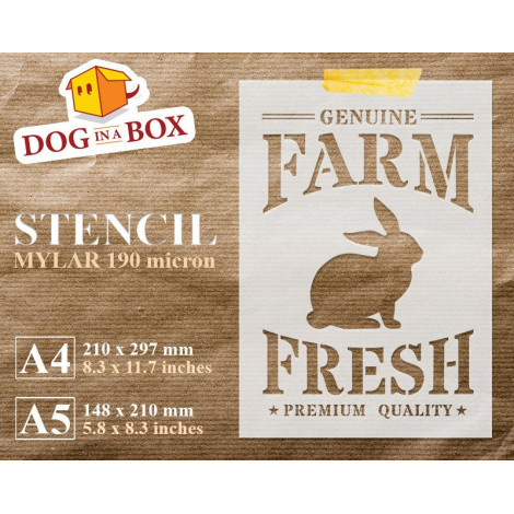 Stencil Farm Fresh Bunny - Stencil agricolo riutilizzabile per insegne in legno, tessuti, borse, sacchi e pareti