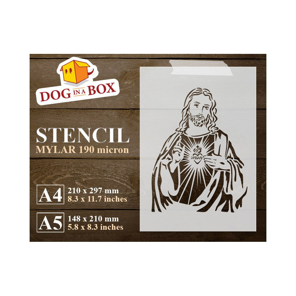 Stencil Gesù riutilizzabile per legno, pareti e tessuti.