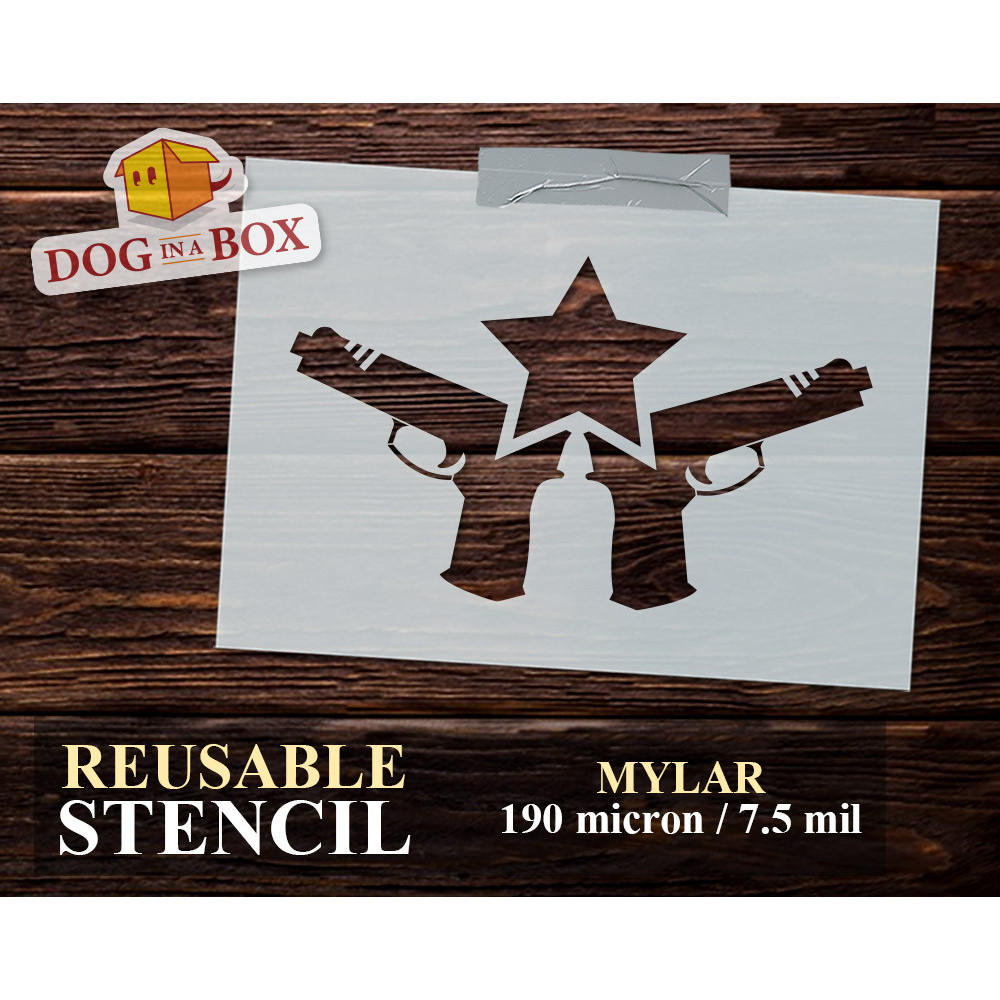 Stencil con Pistole e stella - Stencil riutilizzabile per softair e poligoni di tiro