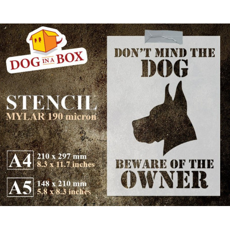 Stencil "Attento al Padrone" in inglese - Stencil riutilizzabile con cane da guardia