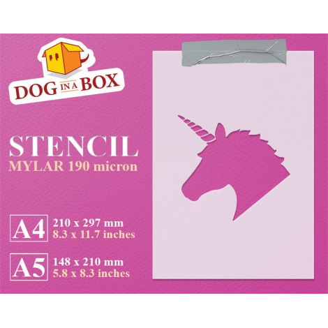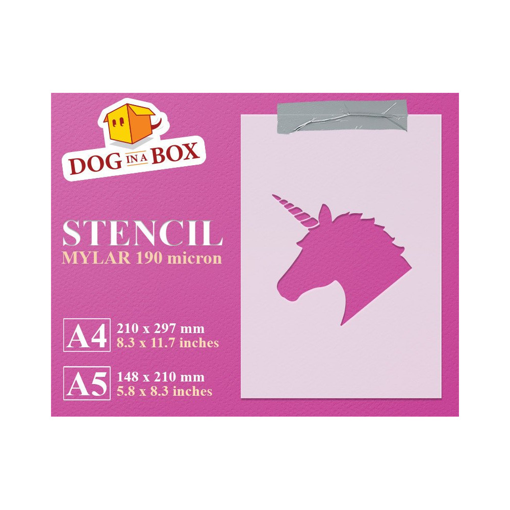 Stencil riutilizzabile e multiuso, realizzato in Mylar 190 micron con pellicola in poliestere resistente ai solventi.