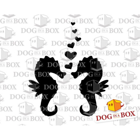 Stencil riutilizzabile di cavallucci marini innamorati per pittura su legno, pareti o tessuti.