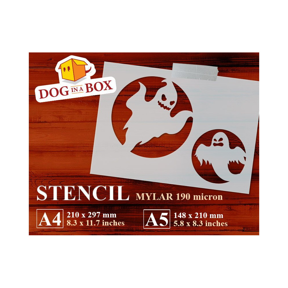Stencil fantasmi n.2 - Stencil riutilizzabile per halloween con fantasmi per decorare legno o zucche