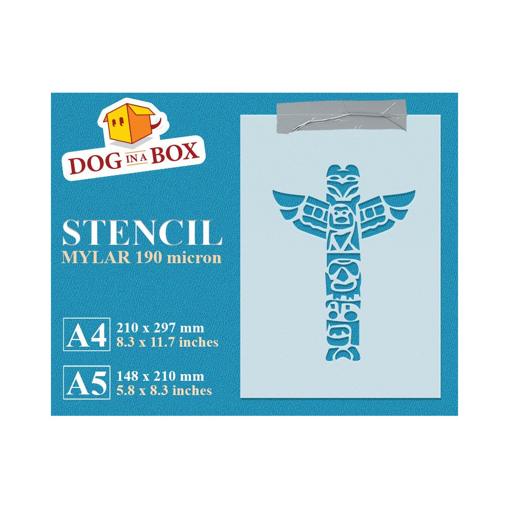 Stencil Totem n.1 - Stencil riciclabile di un totem dei nativi americani per pittura murale, legno, tessuti