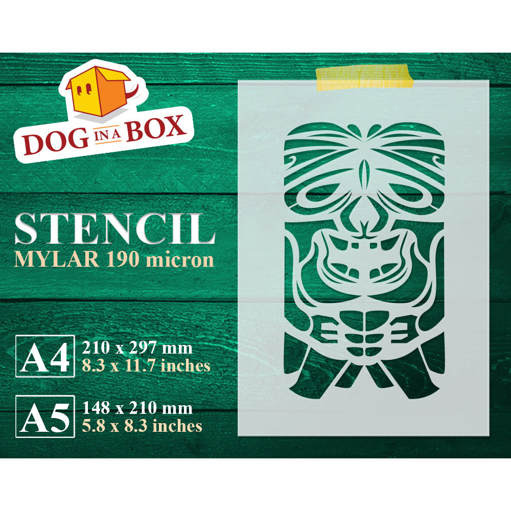 Stencil Tiki Totem n. 2 per pittura su legno, pareti e tessuti.